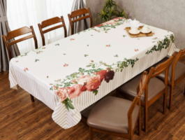 | 汚れが付きにくい撥水加工が施された、 ルドゥーテ「美花選」からパンジーをモチーフにしたテーブルクロスです♪ |