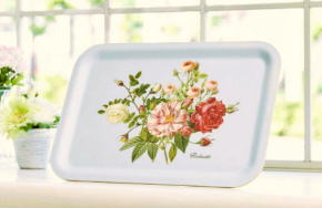 木製トレー 薔薇ブーケ柄 ルドゥーテ ローズ バラ図鑑 長方形 商品コード: RDT-T004 本体価格(税抜き): 3,200円 サイズ(cm): 横35X縦24X厚み0.4 材質: ヤチダモ原木、ワニス塗装、プリント張り付け |