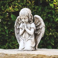 | 花壇や段差のある部分に腰を掛けさせるタイプのエンジェルです♪ 一輪の薔薇を手にする天使の、立体感のある優雅な置物になります! |