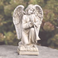 | 手にとまる青い鳥を見つめ、優しく微笑む天使のガーデン用置物です♪ | |