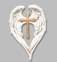 | アイボリー調の天使の羽根の中央には、 アンティークゴールド仕上げのクロスが素敵な壁掛けです♪ |